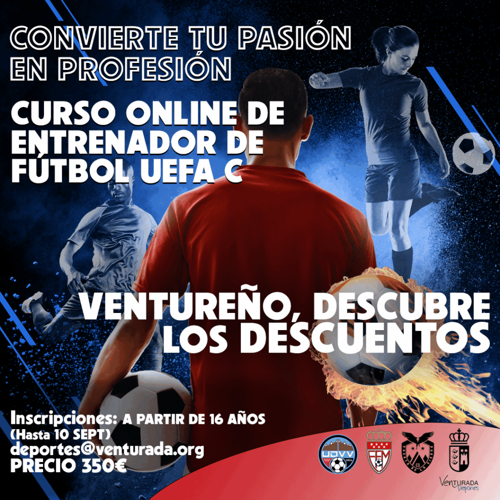 Si tienes 16 años o más y sientes pasión por el fútbol, este curso puede ser el inicio de tu profesión. ¡CURSO ONLINE! ¡GESTIONA TU TIEMPO DESDE CASA! Inscríbete en: deportes@venturada.org indicando: Nombre y apellidos. Fecha de nacimiento. Teléfono de contacto. Correo electrónico. Municipio en el que estás empadronado. DNI. Si eres Ventureño, solicita información sobre los […]