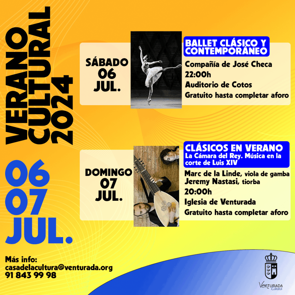 Queridos vecino/as de Venturada, Desde la Concejalía de Cultura, nos complace enormemente daros la bienvenida al Verano Cultural de Venturada 2024. Disfrutaremos durante el verano de grandes eventos. Programación que publicaremos cada semana, desde julio a septiembre, esperando que el Verano Cultural, nos llene de alegría, entretenimiento y enriquecimiento cultural. Durante el Verano Cultural nuestro […]