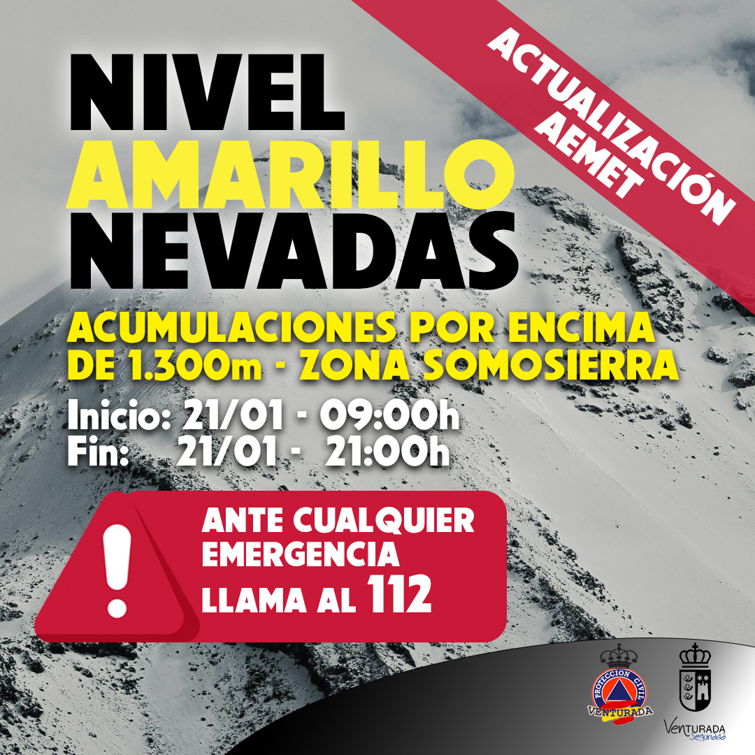 ACTUALIZACIÓN de fenómenos meteorológicos adversos de nivel AMARILLO por NEVADAS.
