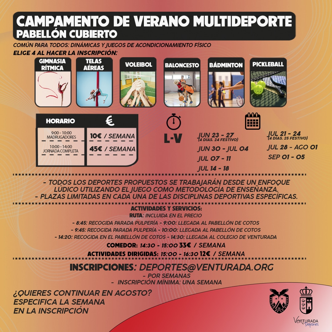 ¡INSCRÍBETE YA en deportes@venturada.org !