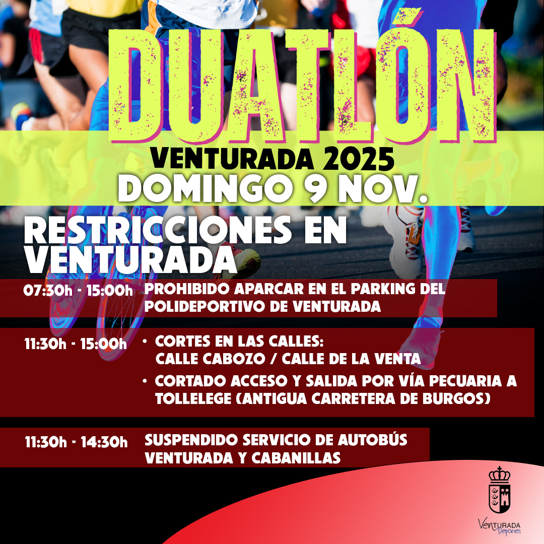Aviso Importante – Duatlón Venturada (domingo 9 de noviembre) Con motivo de la celebración del
