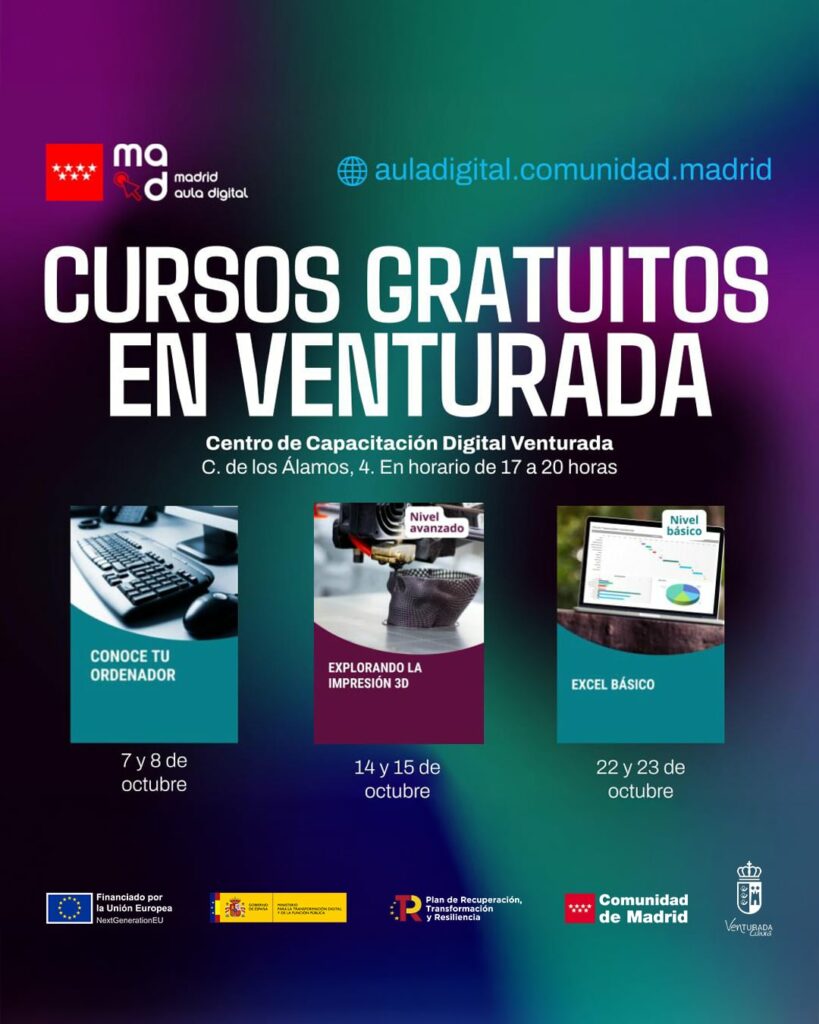 Llegan los nuevos cursos que tendrán lugar durante el mes de octubre, en nuestro Centro de Capacitación Digital de Venturada, en la Casa de la Cultura