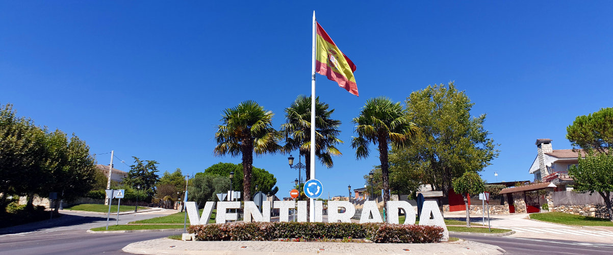 Venturada tiene una extensión de 9.80 km limita al norte con el término de Cabanillas de la Sierra, al este con los de Redueña y El Vellón y, al sur con Guadalix de la Sierra, y al oeste comparte límites con los ya mencionados términos de Guadalix y Cabanillas de la Sierra.