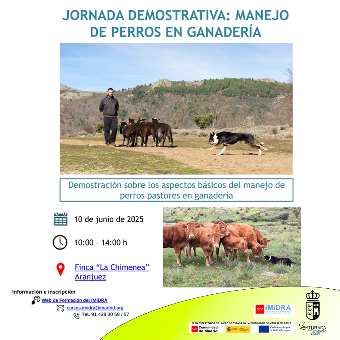 Te presentamos la Jornada demostrativa manejo de perros en ganadería: martes 10 de junio, de 10 a 14, Finca La Chimenea