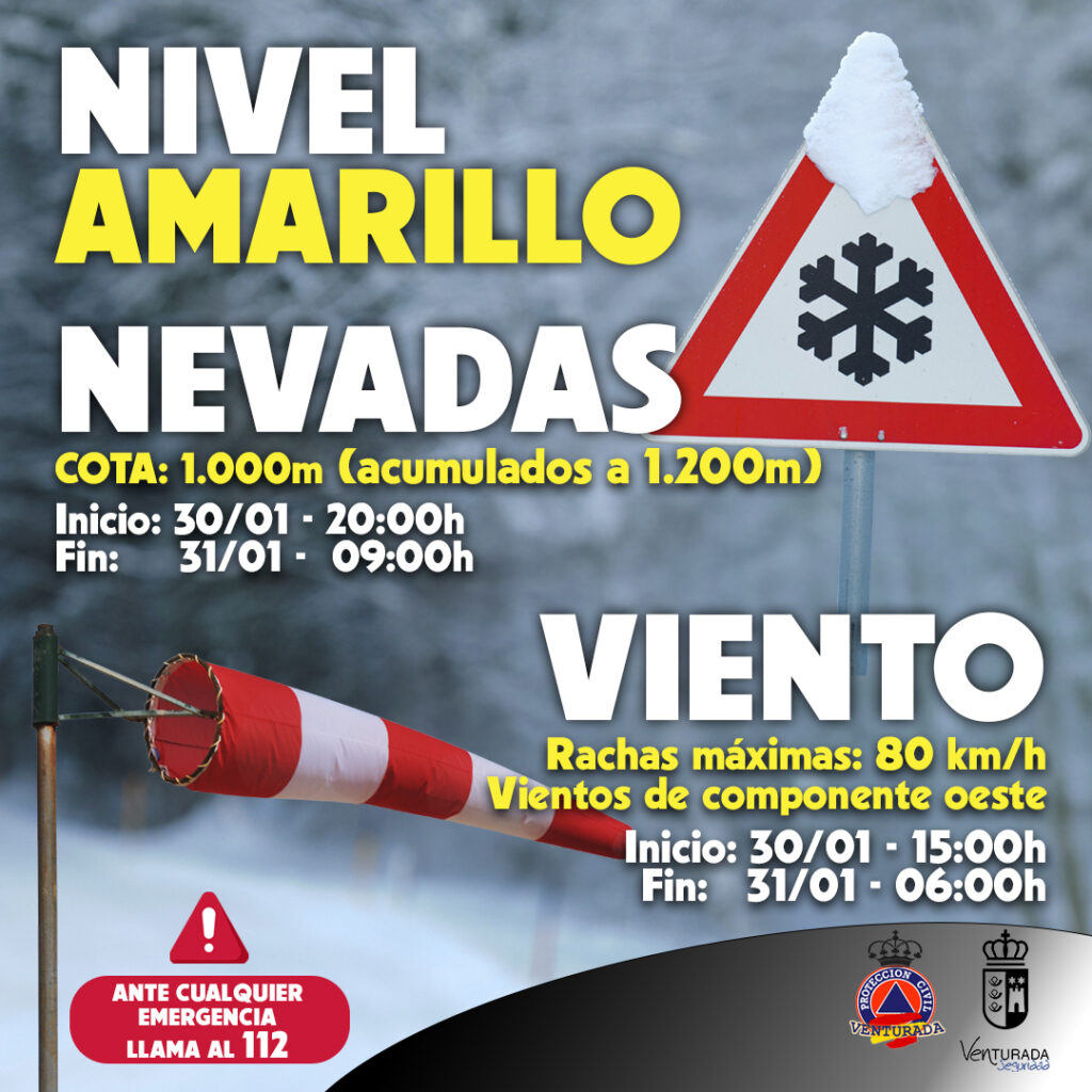 Nivel amarillo nieve y viento