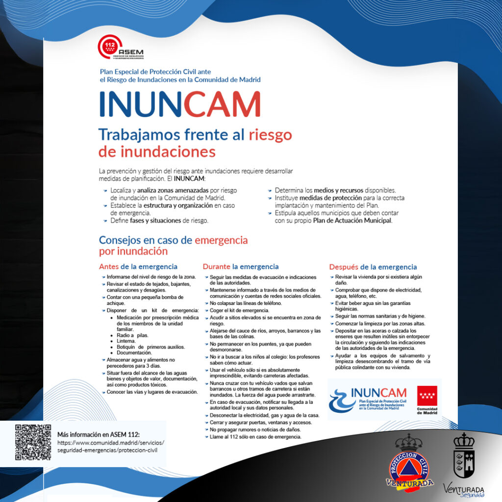 La Agencia de Seguridad y Emergencias Madrid 112 ha activado la fase de preemergencia del Plan Especial de Protección Civil ante el Riesgo de Inundaciones en la Comunidad de Madrid (INUNCAM), desde las 09:00 horas de hoy, miércoles 29 de abril, ante la previsión de lluvias y tormentas.