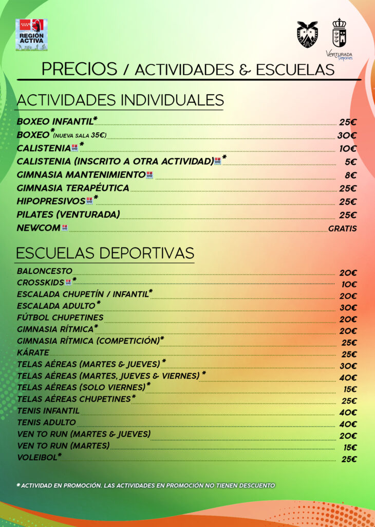 A continuación, puedes consultar todos los precios y modalidades disponibles para participar en nuestras actividades deportivas.