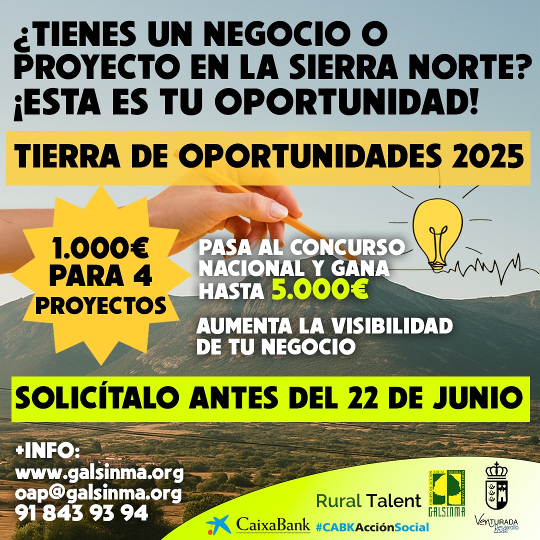 Inscríbete ya en: https://www.galsinma.org/otros-proyectos/convocatoria-tierra-de-oportunidades-2025