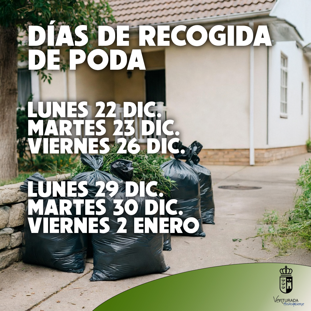 Durante las semanas de navidad las recogidas de podas serán en los días indicados.
