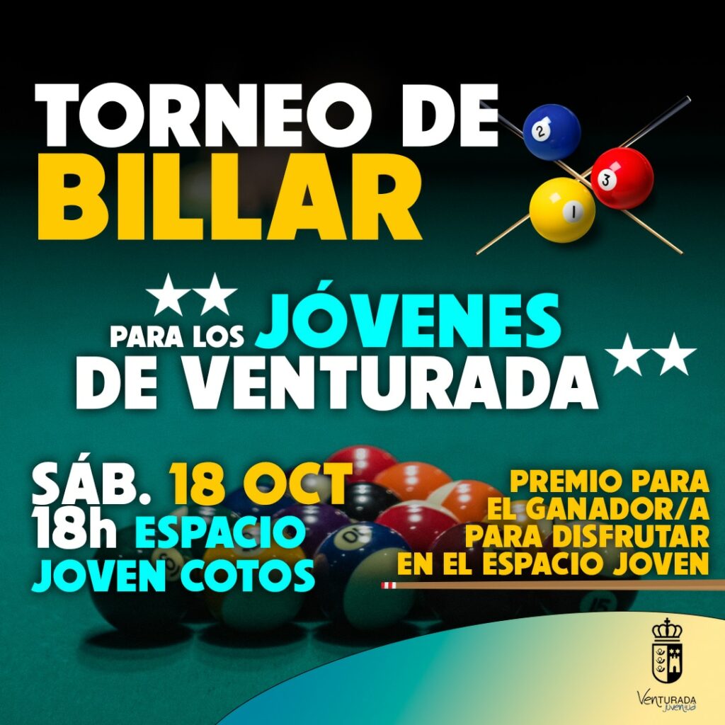 El próximo sábado 18 de octubre, el Espacio Joven de Cotos se convierte en el punto de encuentro para todos los jóvenes amantes del billar.