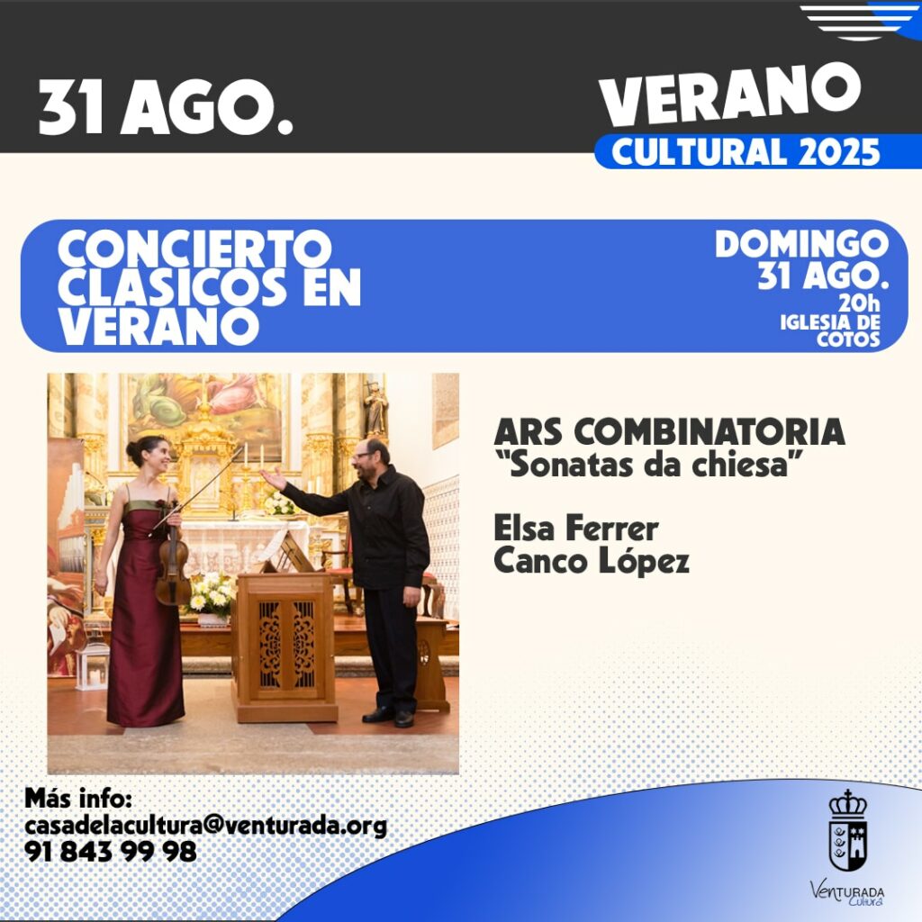 A cargo del grupo Ars Combinatoria, con la interpretación de Canco López y Elsa Ferrer, que nos proponen un recorrido por las sonatas de iglesia del barroco en un entorno lleno de magia y acústica excepcional.